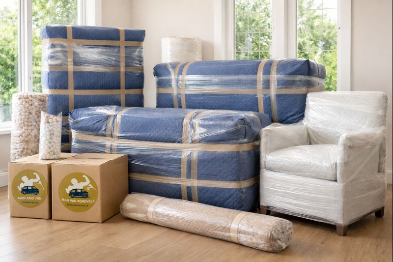 t Man and Van, we pride ourselves on providing comprehensive moving services designed to make your move as easy and stress-free as possible. We understand that moving can be an overwhelming process, which is why we offer complete pack and wrap services to ensure your belongings are handled with the utmost care. Our team supplies all the necessary materials, including boxes, cling film, bubble wrap, and labels, to securely pack your items. By labeling each box, we ensure that everything is organized and placed in the correct location in your new home.